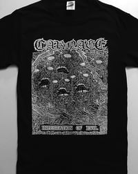 Distro item Black T-shirt with old artwork from the demo cover. Classic Swedish Death Metal band.